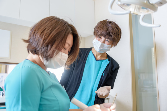 仕事の基本がまとめられた「業務マニュアル」が用意されており、治療の流れ、使用機器・材料、治療計画の立て方などが一目瞭然です。マニュアルを見てもわからないことは、先輩スタッフが丁寧に指導いたします。